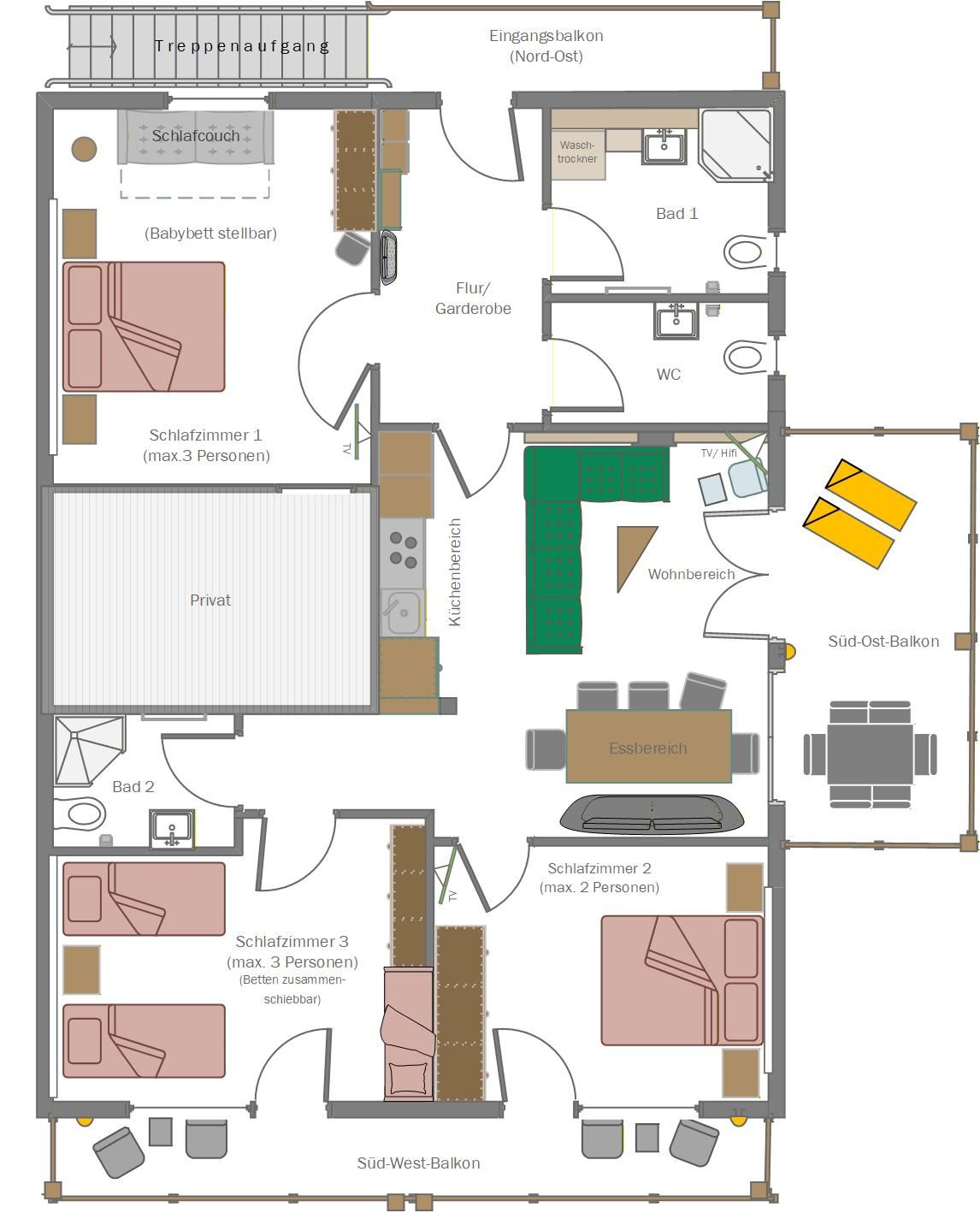 Babybett und Trip-Trap Hochstuhl (mit oder ohne Kleinkind-Set) oder Ikea Antilop können kostenlos gebucht werden, sprechen Sie uns gerne an.