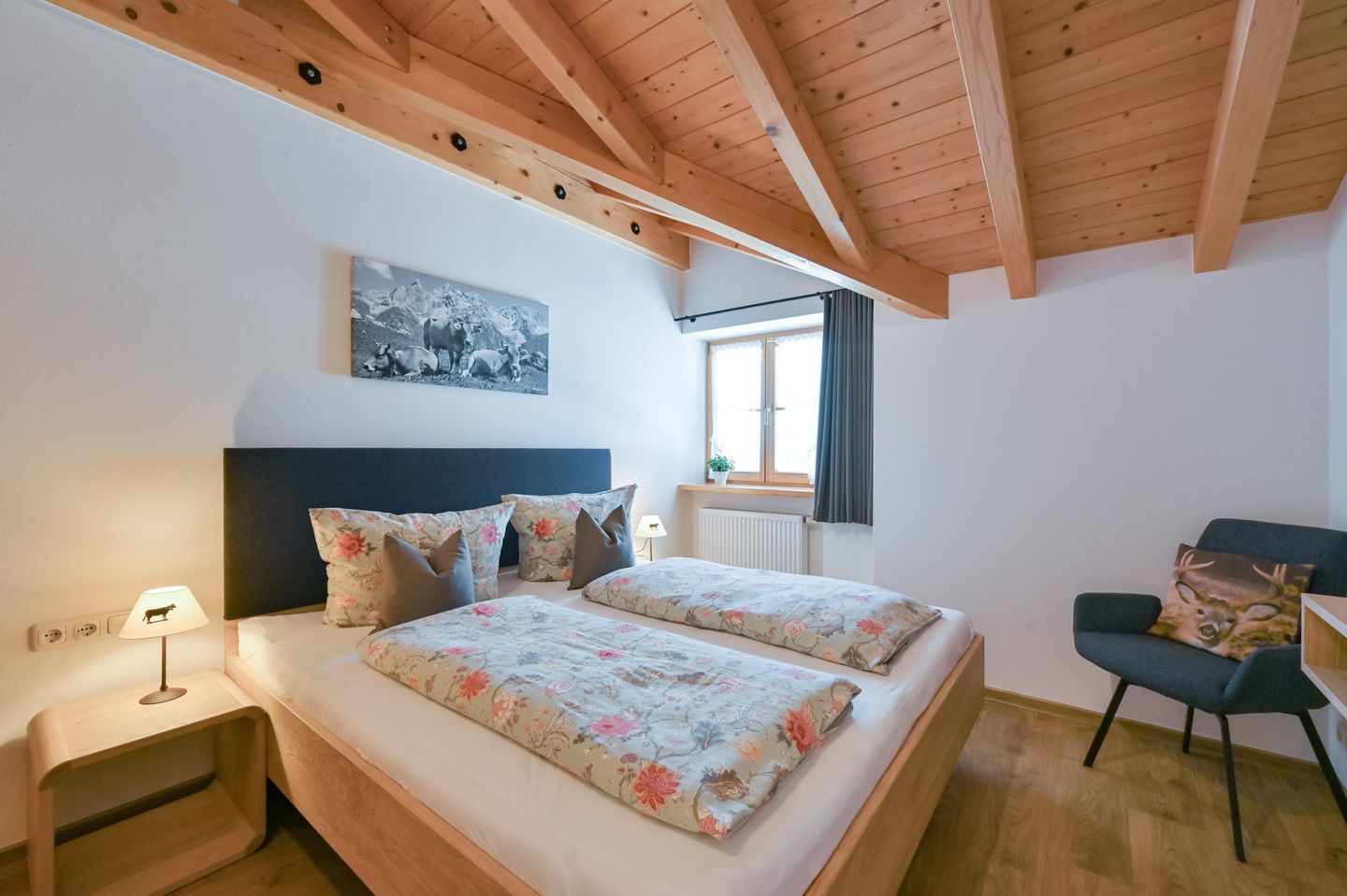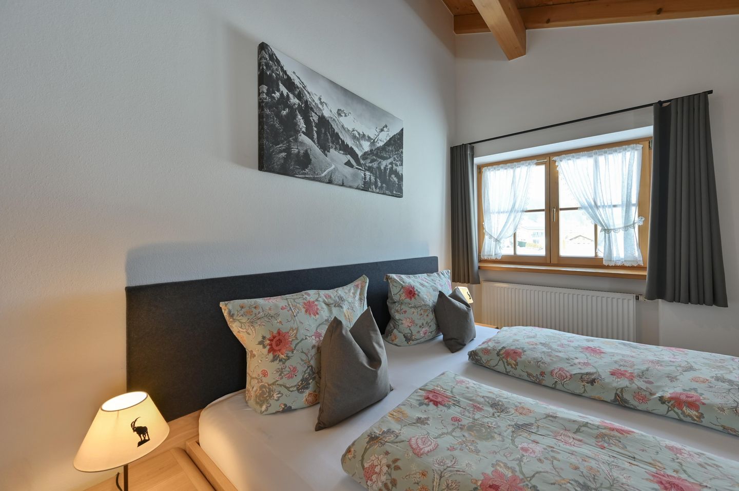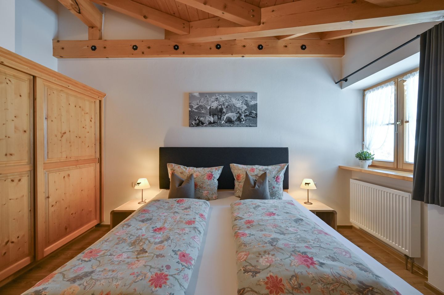 Wer Ruhe, frische Bergluft und einen traumhaften Bergblick sucht, wird sich in der Ferienwohnung Gamswinkel wohlfühlen. Sie ist neu mit Schreinermöbeln im Allgäuer Alpin Chic eingerichtet und besticht durch ihren alleinigen Süd-Balkon mit Panoramasicht auf die Alpen.