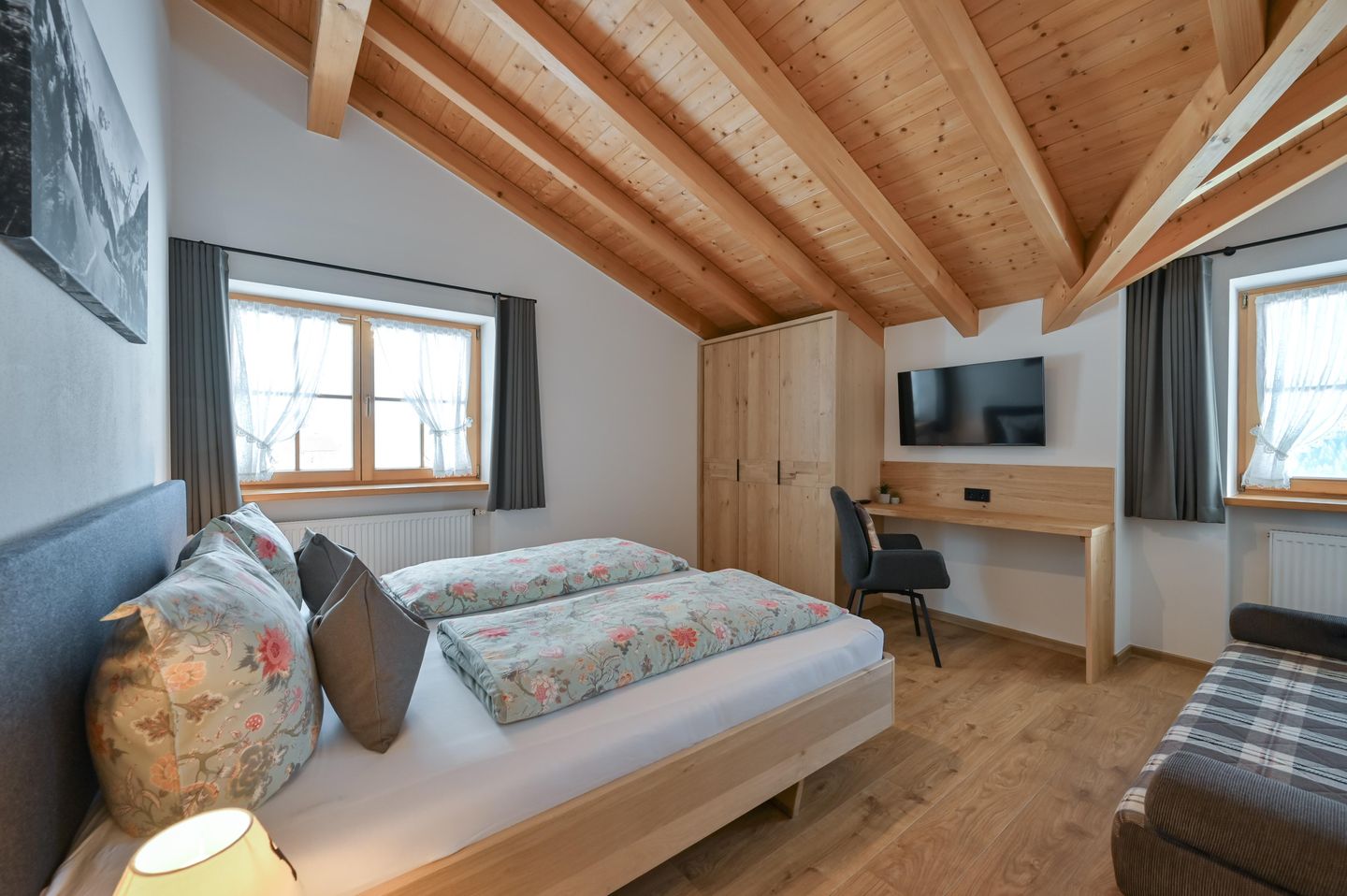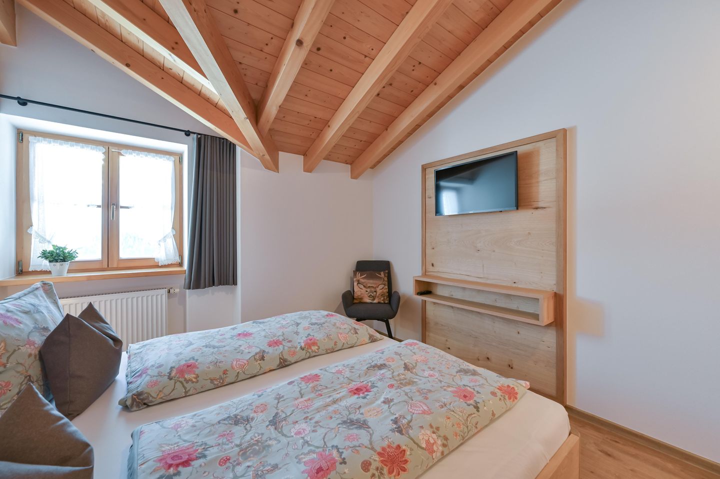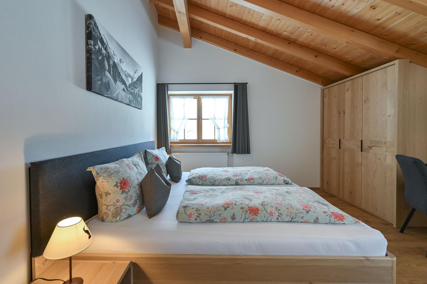 Wer Ruhe, frische Bergluft und einen traumhaften Bergblick sucht, wird sich in der Ferienwohnung Gamswinkel wohlfühlen. Sie ist neu mit Schreinermöbeln im Allgäuer Alpin Chic eingerichtet und besticht durch ihren alleinigen Süd-Balkon mit Panoramasicht auf die Alpen.