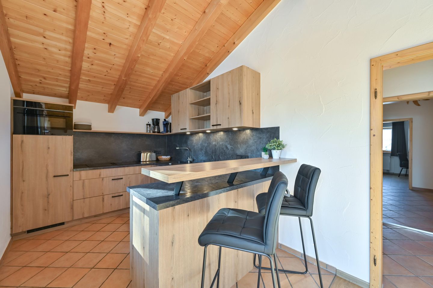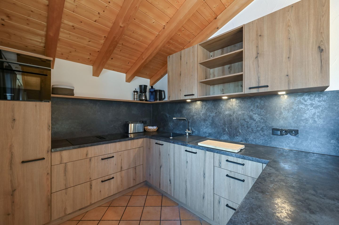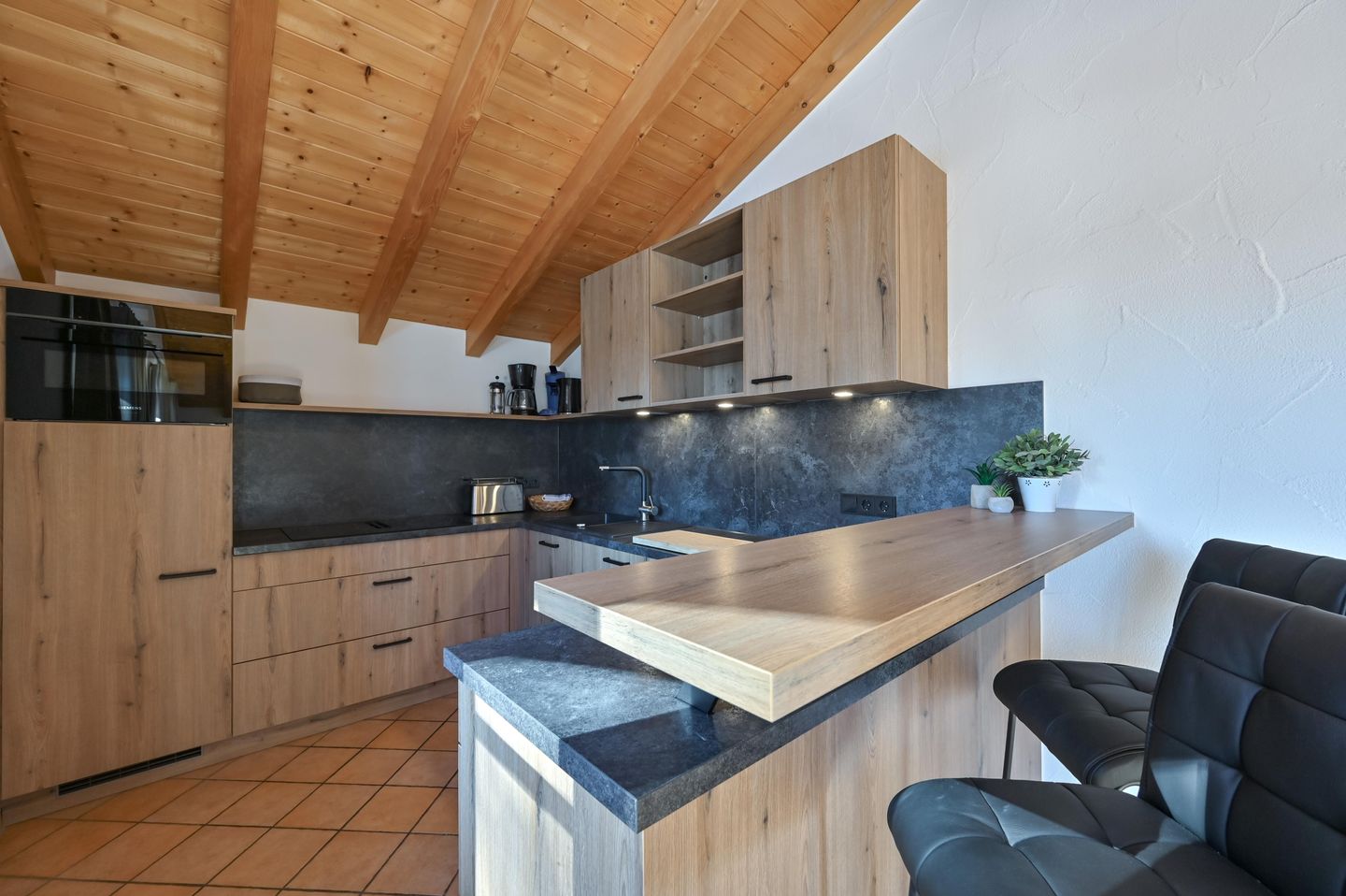 Offene, komplett ausgestattete Küche