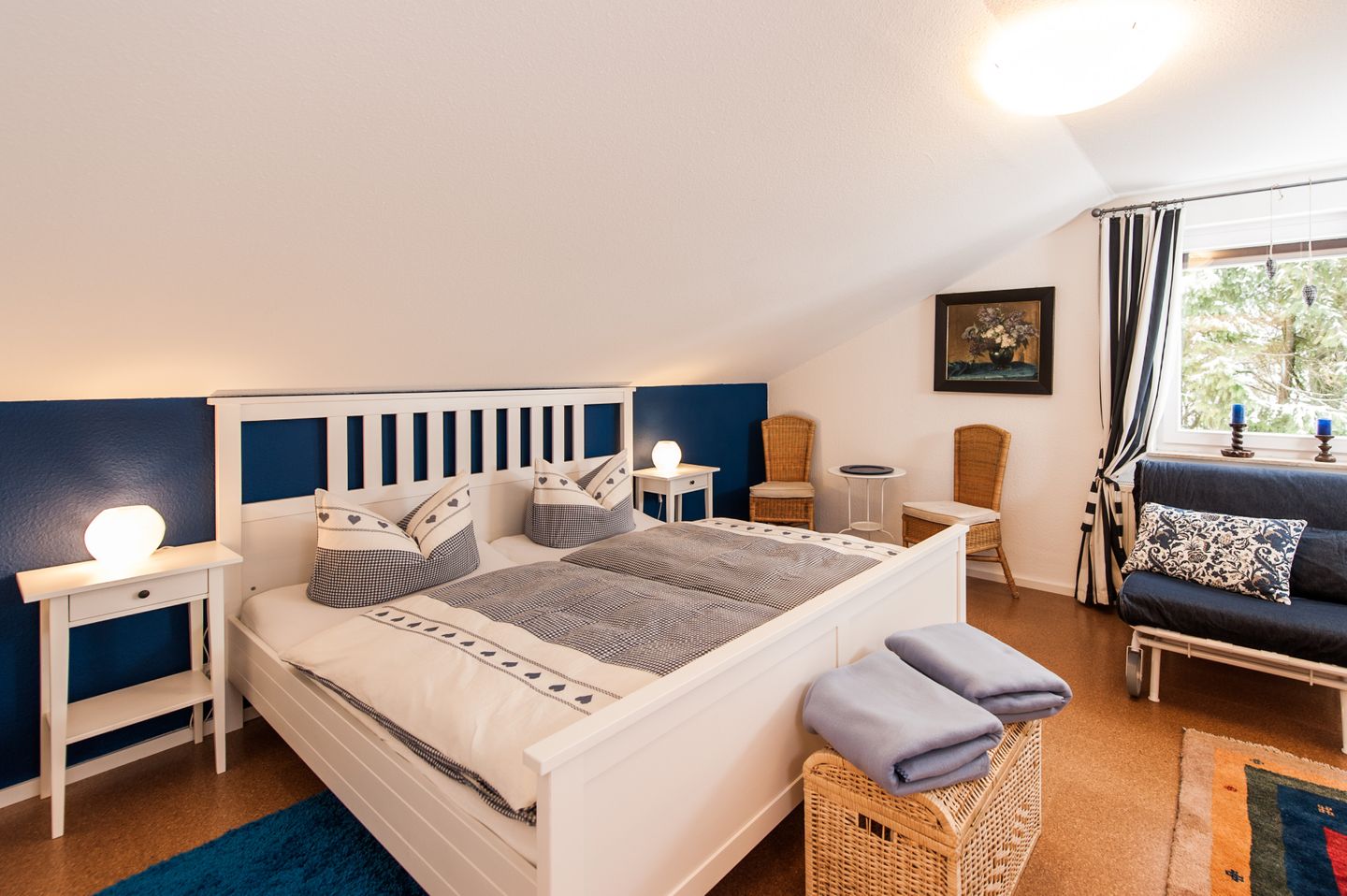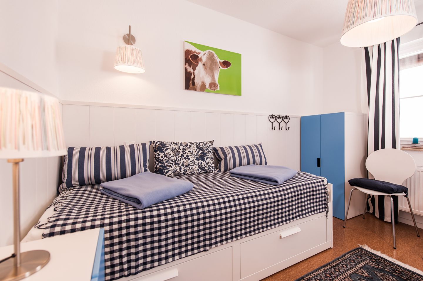 zwei Schlafzimmer mit Doppelbetten, eines noch mit einer Liege für ein Kind.